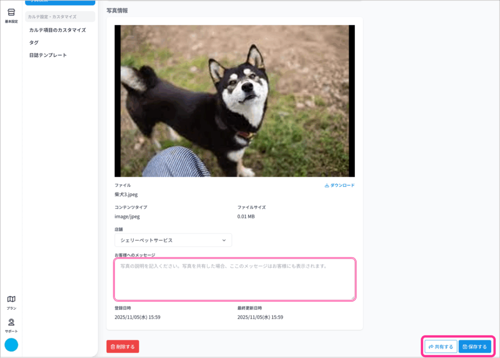 ペット写真や動画の登録方法をご説明します。飼い主様と連携していれば、写真や動画を簡単に共有することができます。共有せずに登録だけしておけば、記録として残しておくこともできます。