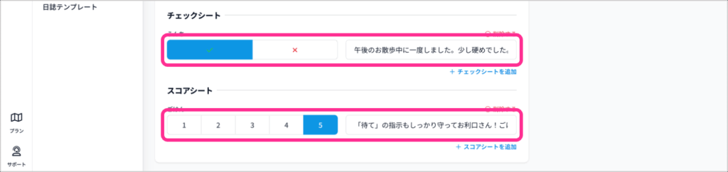 ❹(任意)チェックシート・スコアシートは、それぞれ「追加」をクリック。