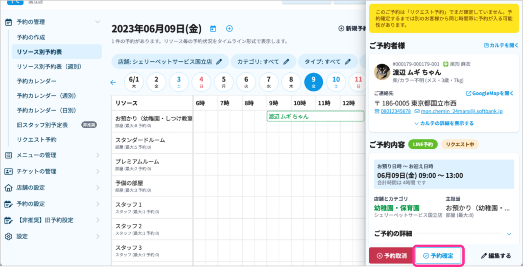 飼い主様からのリクエスト予約を確定する方法をご説明します。リクエスト予約が入った際には、登録された店舗メールもしくはLINEに通知が届きますので、忘れずに確認しましょう。