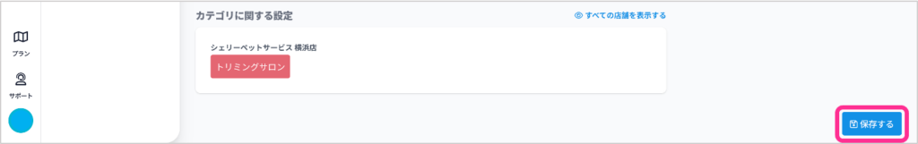予約を受け付ける店舗・カテゴリを選択します。複数店舗があり、所属店舗以外でも予約を受け付ける場合は「すべての店舗を表示する」をクリックして設定してください。