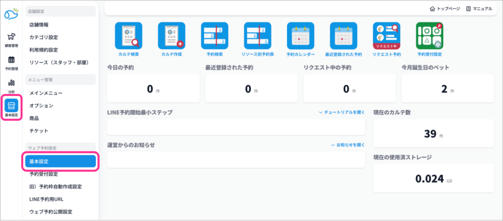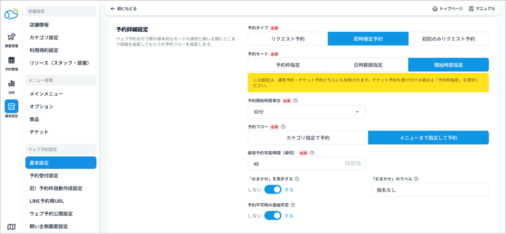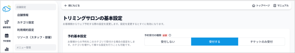 ウェブ・LINE予約を受け付けるための基本設定方法をご説明します。