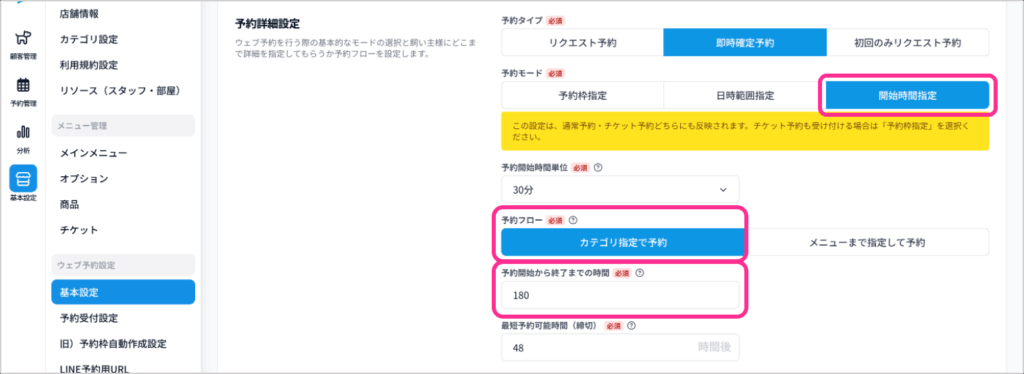予約タイプや予約モード、予約フローの詳細についてはこちらのページで説明しております。