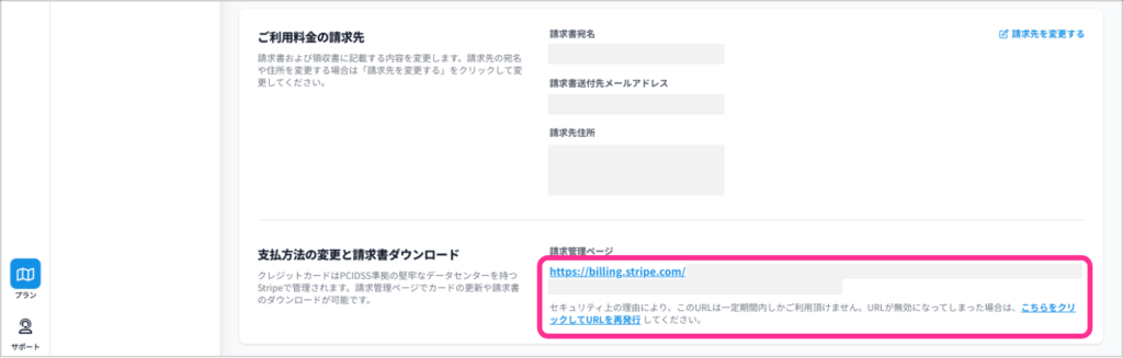 ❶サブスクリプション画面一番下の「支払い方法の変更を請求書ダウンロード」から、請求管理ページのURLをクリック。