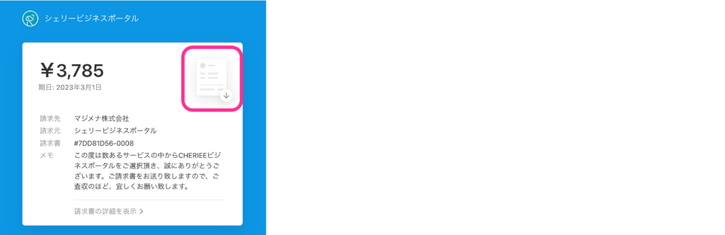 ❸請求書マークをクリックするとダウンロードすることができます。